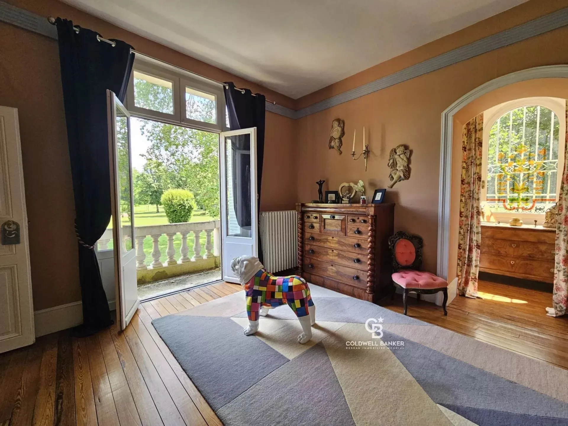 • un château d’environ 400 m², en très bon état général, offrant de belles pièces de réception lumineuses, une suite parentale de plain-pied, et cinq chambres aux étages,