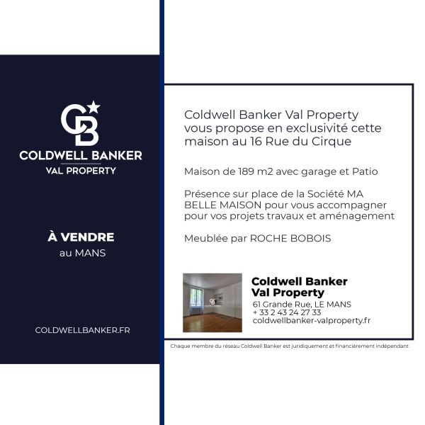 Coldwell Banker Le Mans vous ouvre les portes de cette maison de caractère de 189 m² au 16 rue du Cirque, les vendredi 17 et samedi 18 novembre 2023, de 10h à 13h et de 14h à 18h.