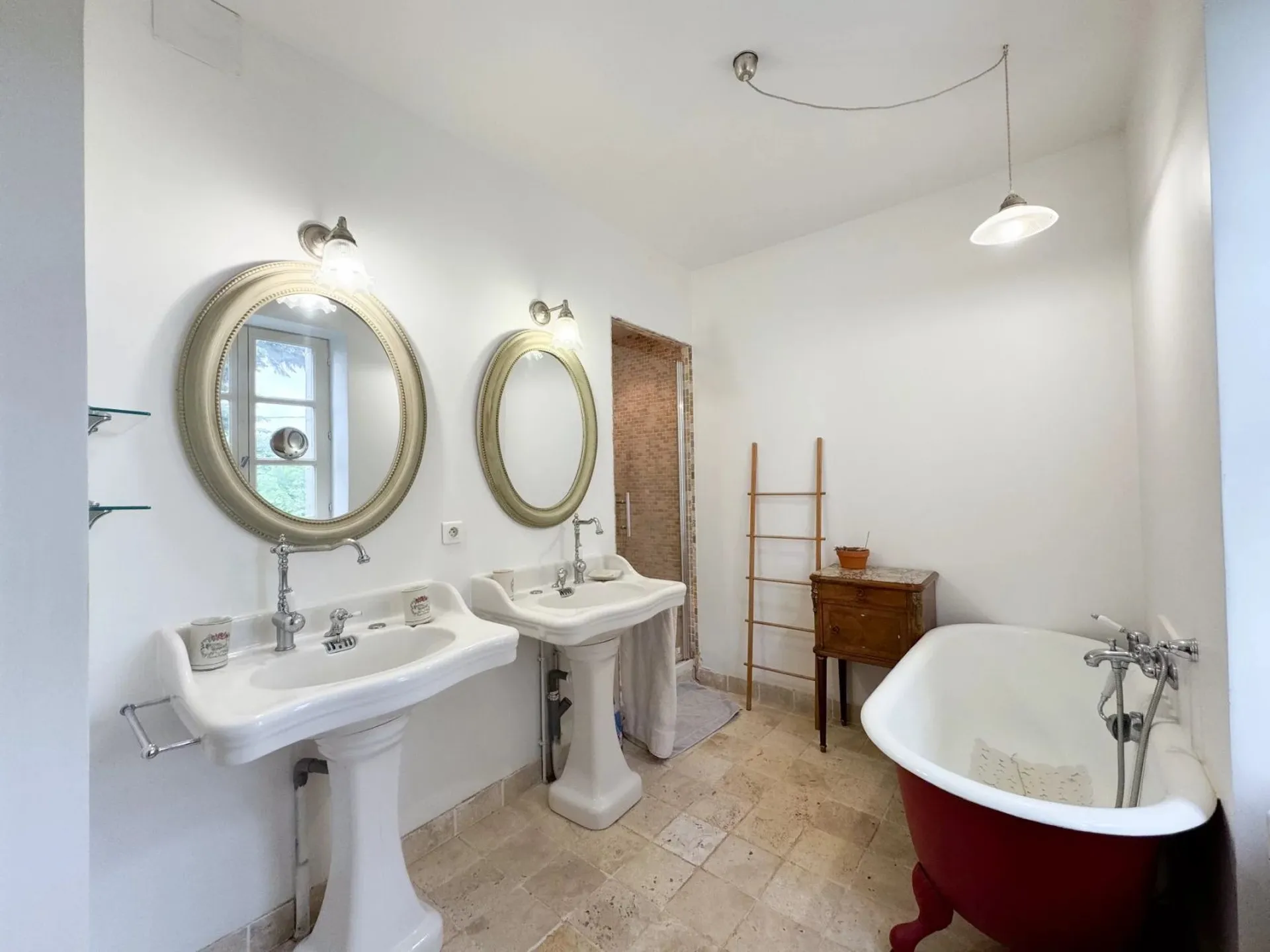 Un magnifique escalier, illuminé par de superbes vitraux, mène aux étages supérieurs où se trouvent quatre à cinq autres chambres, ainsi que deux salles de bains et une lingerie bien équipée.