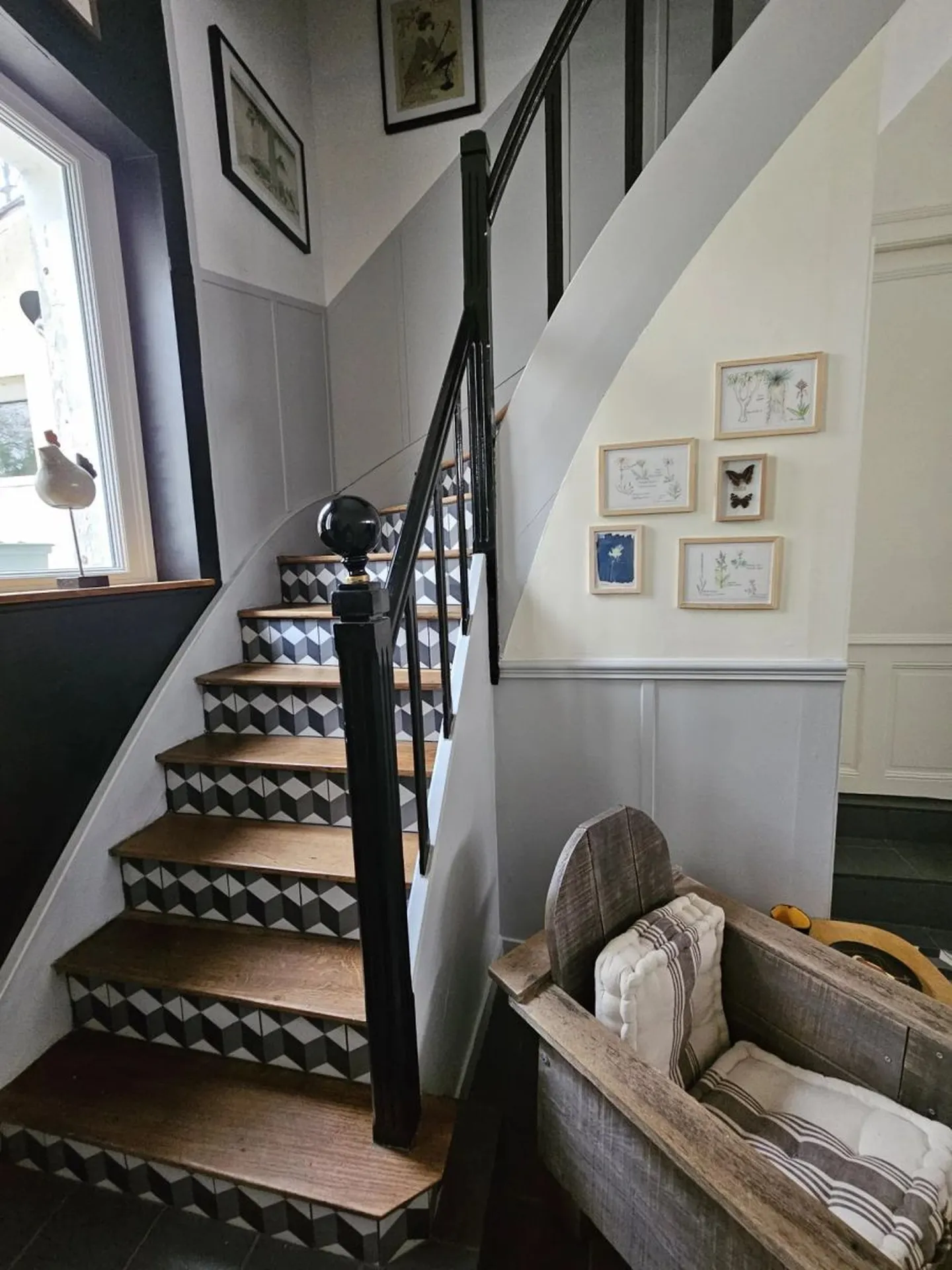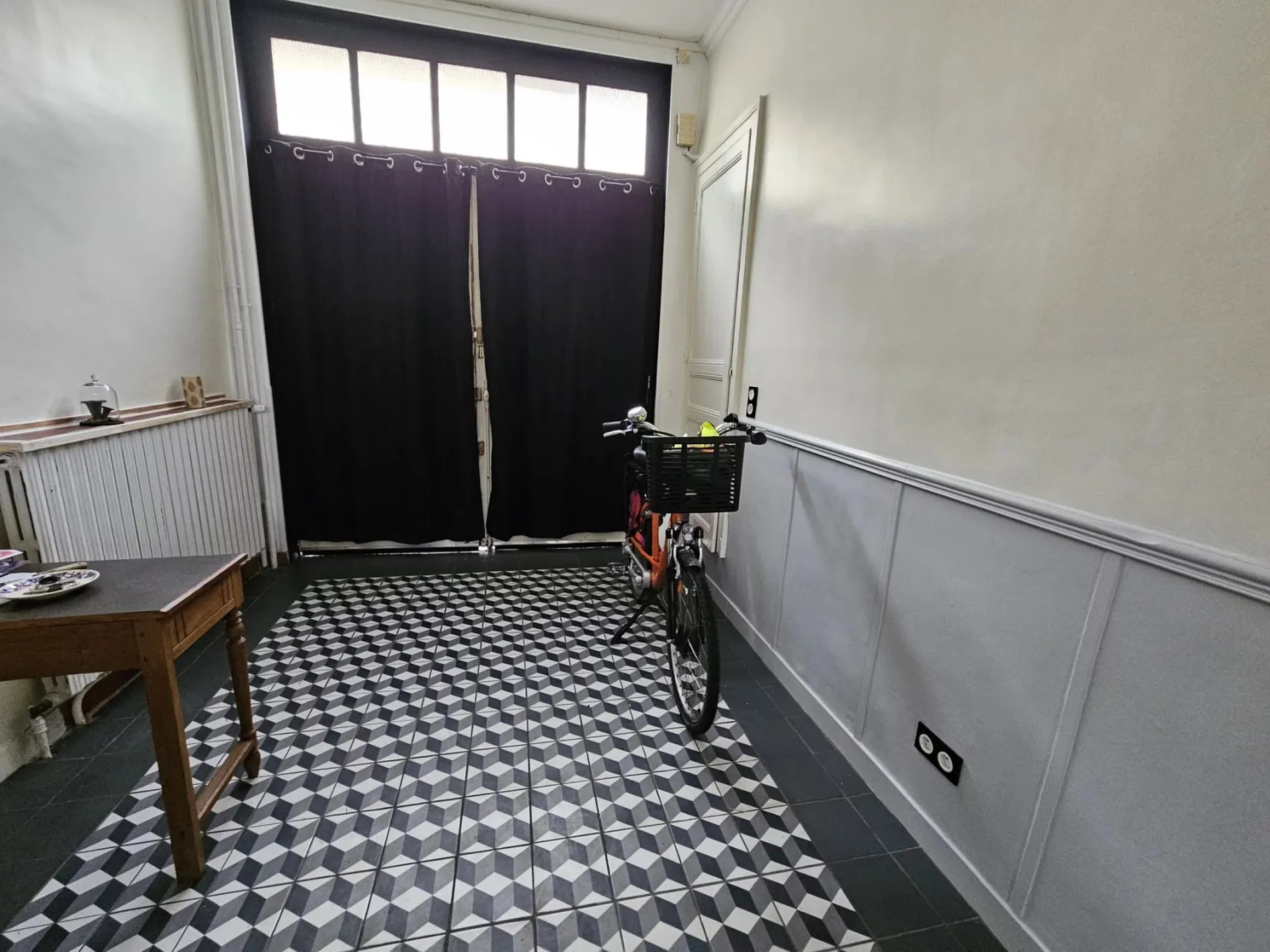 Elle vous accueille dans un joli porche carrelé idéal pour accueillir les vélos et poussettes.